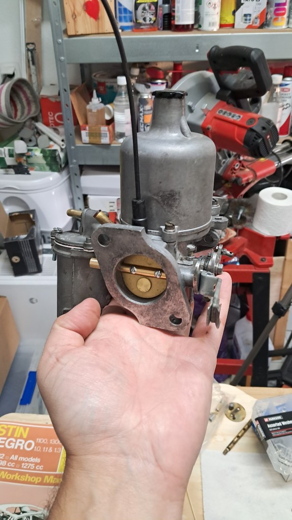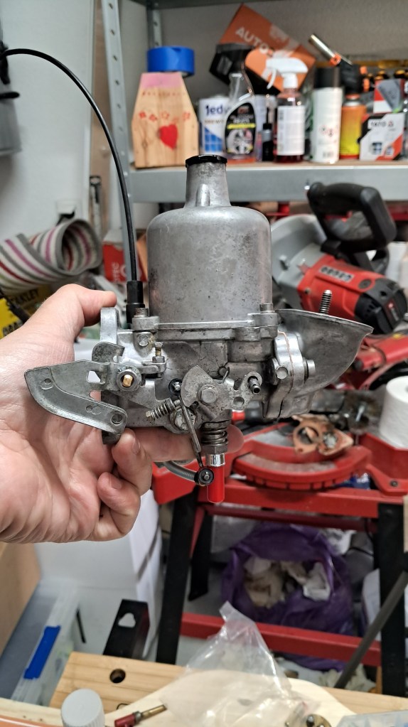 I’ve rebuilt the carburettor using the “expensive kit” and amazingly it went back together in the right order with no parts left over. Having done that I almost understand how a carb works now, but only just. The manifold has also been given a thorough clean and de-rusting, inside and out. No point filtering the air if you’re just going to add particles of rust to it at the last moment. Much supermarket cola was used in the process of de-rusting and it got messy. I might put out a video about that one day, but only if I don’t look like a total idiot. Partial idiot I can live with, but not total.