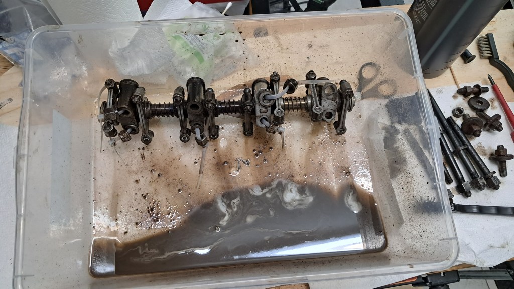 The rocker assembly is in good condition; it only needed a good degrease and a clean in isopropanol. Even the adjusters are fine and didn’t shear off or disintegrate into dust when I tried to free them.