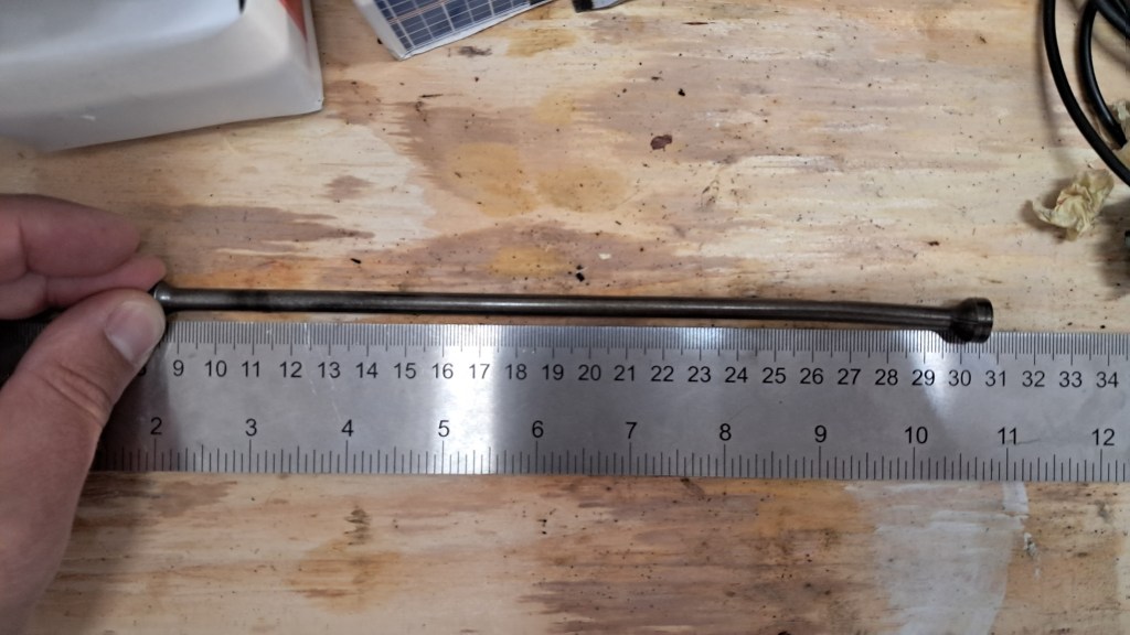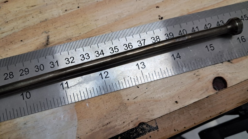 We’re almost ready to re-install the cylinder head and try for a first start. One minor set-back is that I just noticed at least one of the valve pushrods are bent! This particular one has some impressive witness marks as it gouged itself against the block – very nice. Due to the cleanness of the marks I guess this happened fairly recently.