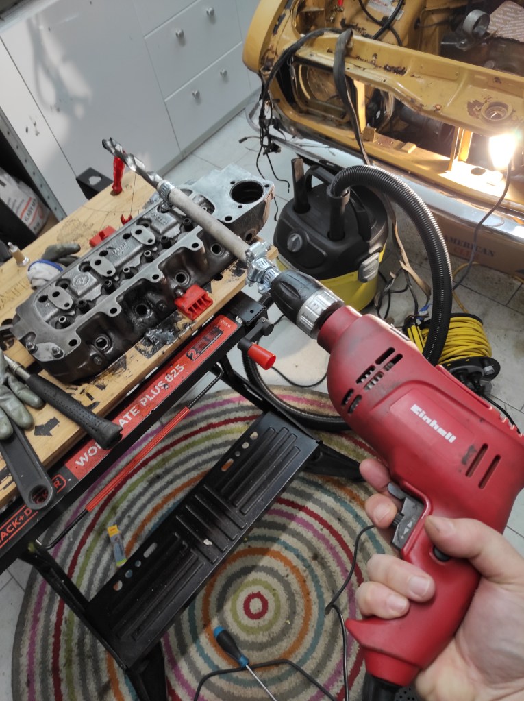 In March I made a start on the engine, and several items on the Big List have already been crossed off. I could have started with the bodywork or anything else, but I fancied a crack at the engine. The spark plug remnants have been drilled out and the cylinder head rethreaded – this was a lot easier than expected! I also had the head checked by a professional engine builder for flatness and so on. The alternator, distributor and coil have been replaced too.